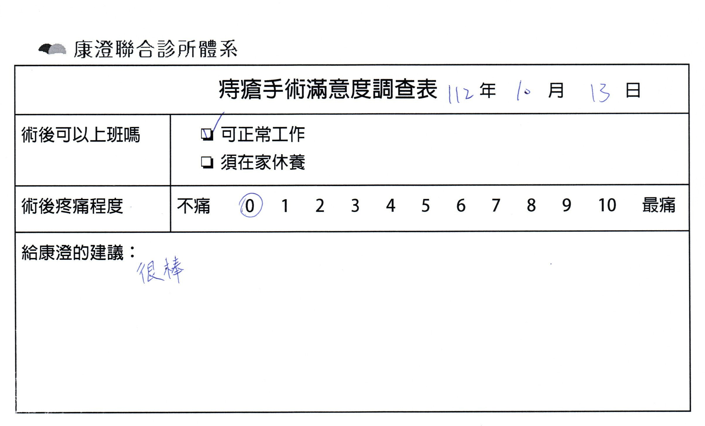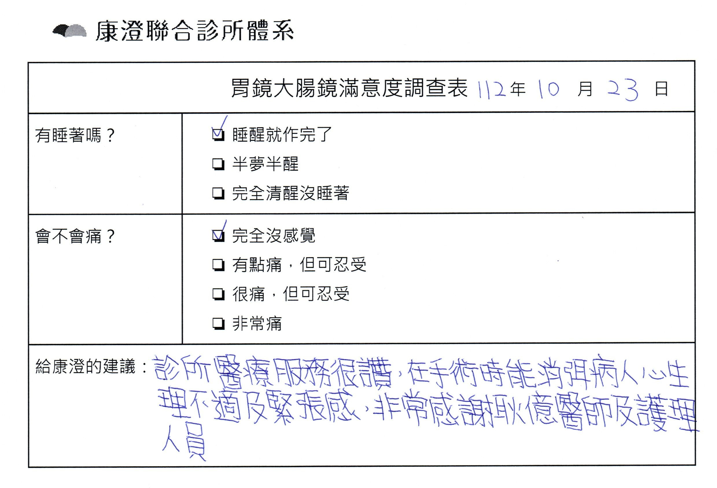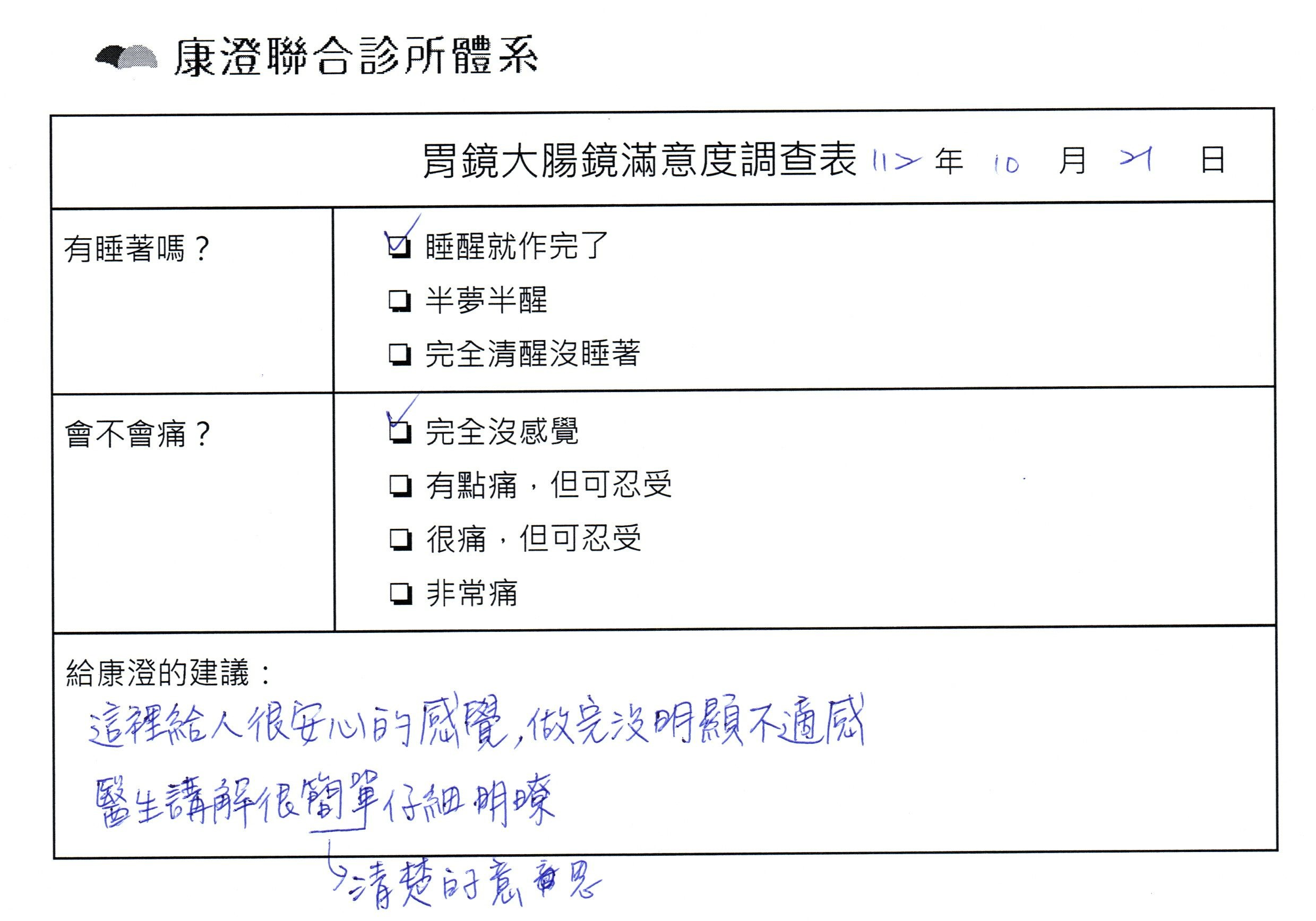 「劉醫師很專業又細心,檢查與手術一起完成很有效率,護理團隊照顧相當仔細,很放心來康澄處理!」